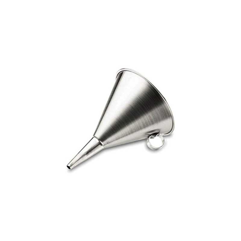 Stainless steel piston funnel suitable for liquid consistency products such as coulis, sauces, and creams, allowing for precise distribution. This professional utensil comes with a stand for stable use. Dishwasher safe. 7.5mm nozzle.
