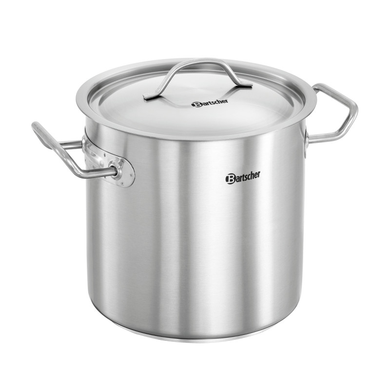 This High Pot with Lid Kitchen Line is 28 cm in diameter. It has a capsulated bottom, which combines perfect heat diffusion by aluminum with excellent resistance and magnetic properties of stainless steel.