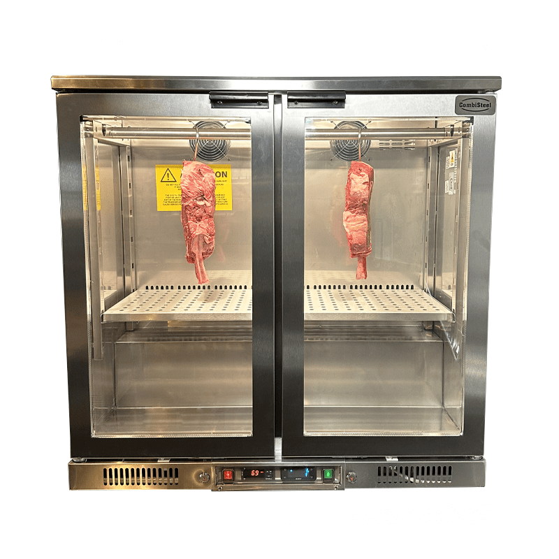 Idéale pour les professionnels de la restauration, cette Armoire de Maturation Dry Age 380 a une capacité de 380 litres, et son intérieur est en acier inoxydable. Le battant de la porte est en verre. Elle a une plage de température de 2 °C à 14 °C et une température ambiante de 18 °C à 38 °C. Cette armoire de maturation sèche offre des conditions parfaites pour une excellente maturation de la viande pour les boucheries et les restaurants professionnels.
