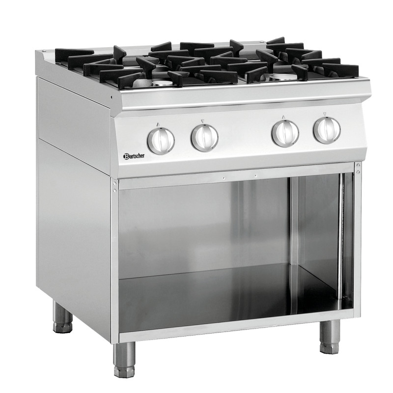 Idéale pour les professionnels de la restauration, cette Plaque Coup de Feu avec 4 feux Vifs Four Gaz Placard 700 en construction Inox et a des dimensions de L 1200 x P 730 x H 870 mm. PCF avec un brûleur central, un allumage piézo, une veilleuse et un thermocouple. Brûleur central avec allumage piézoélectrique, veilleuse et thermocouple. Four à gaz spacieux et pratique, compatible GN 2/1 avec thermostat, thermocouple et allumage piézoélectrique. Le brûleur central a une puissance de 6 kW, 3 x 6kW, et 1 x 3,5kW à feu vif, et un four 8kW. Pieds réglables. Dimensions intérieures du four 289(H) x 576(W) x 662(D)mm. Le produit doit être installé par un professionnel pour bénéficier de la garantie.