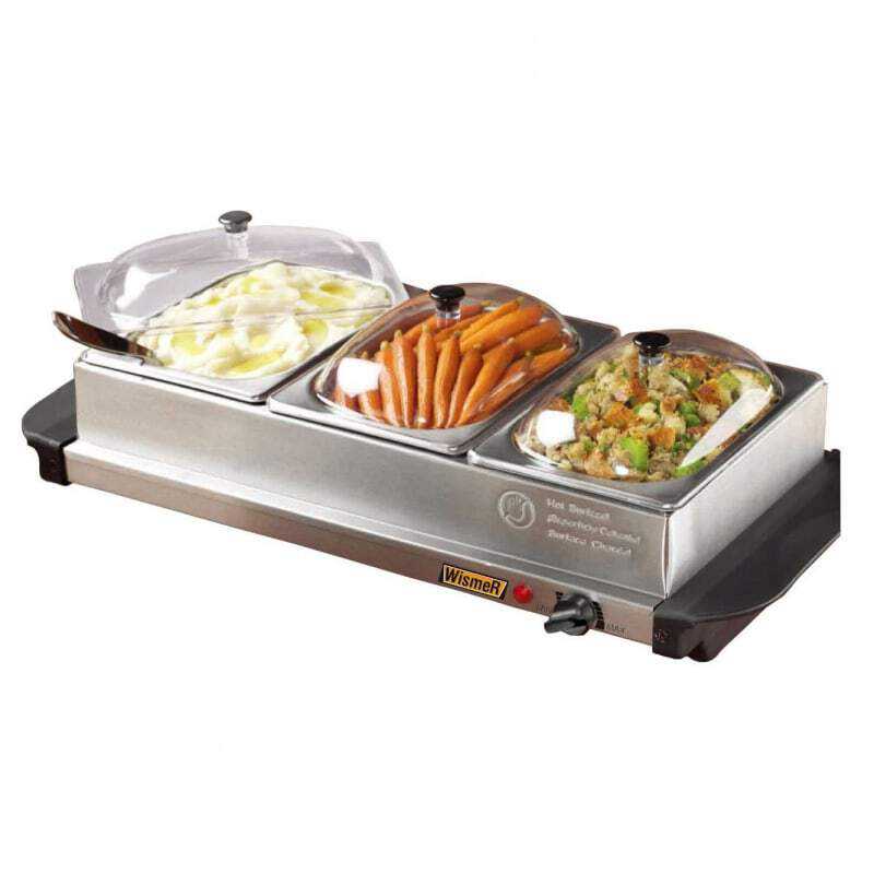 Šis šildomas bufetas su 3 GN 1/3 indais yra puikus sprendimas viešbučių, bufetų, renginių, maitinimo paslaugų, parodų profesionalams, ... Idealiai tinka patiekalams laikyti šiltai prieš juos patiekiant ant stalo, esant tobulai temperatūrai. Reguliuojamas termostatas iki 80 °C. Įrengtas trimis GN 1/3 2,5 L šildymo indais su skaidriais polikarbonato dangčiais, sukurtais įvairiems maisto produktams talpinti. Nerūdijančio plieno rėmas. Gali būti naudojamas kaip plokštė patiekalams ir kulinariniams gaminiams šildyti, nuėmus rėmą ir indus. Rankenos patikimam laikymui ir neslystančios kojelės.