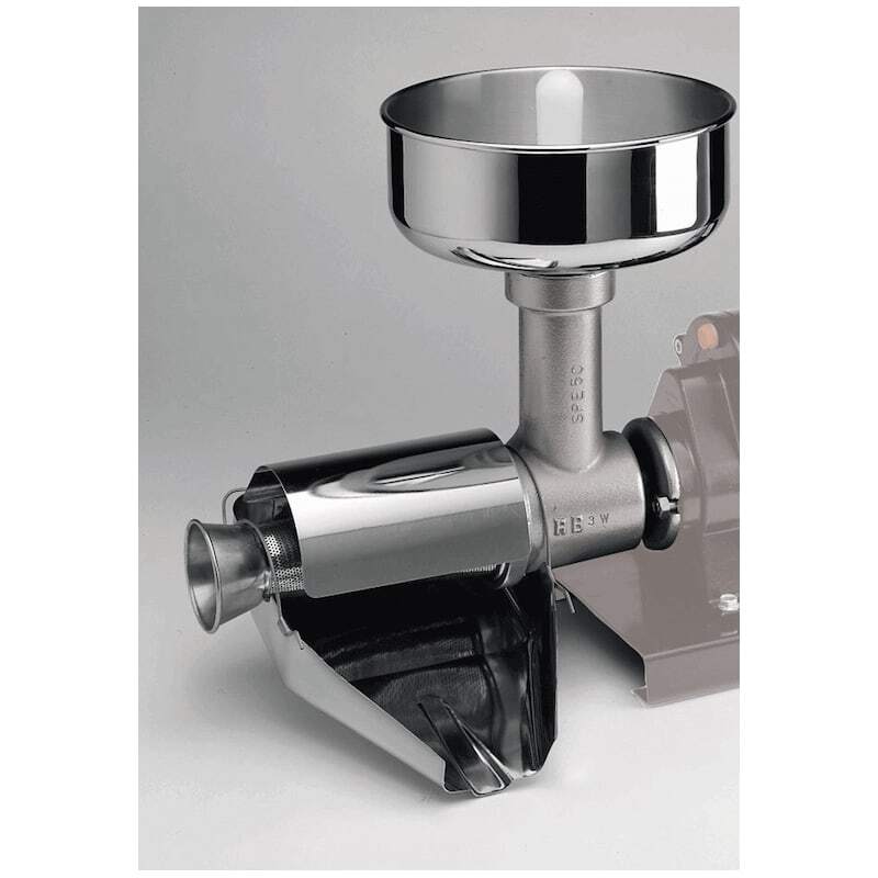 Jį lengva naudoti: pritvirtinkite šį Tellier pomidorų malūną prie stalo krašto ar virtuvės spintelės, tada įdėkite į viršų supjaustytus pomidorus. Pasukite rankeną, o šis pomidorų malūnas išspaustys ir išvalys jūsų pomidorus, kad gautumėte šviežių pomidorų mėsą.